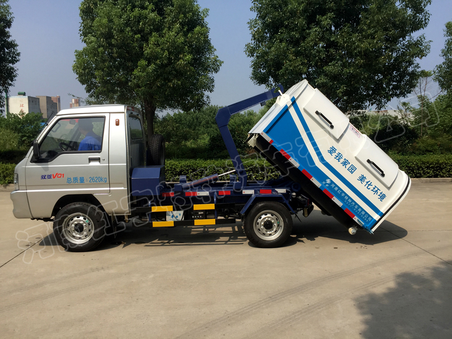 車廂可卸式垃圾車廣泛適用與城市街道學校垃圾處理,可一車配備多個斗,各個垃圾點放置多個垃圾斗,帶自卸功能,液壓操作,方便傾倒。 車廂可卸式垃圾車的箱體部分完全由液壓系統來控制,在平日里可將車載垃圾箱放置到各個垃圾收集站,待垃圾收集滿后,該車可直接開赴至垃圾站,通過液壓系統的操控,可將垃圾車后座上加裝的勾臂放下,掛住站內垃圾箱前端的連接點,將垃圾箱拉至車體的后座上,此時即可啟動車輛,將垃圾運送至垃圾處理站內,進行自卸式傾倒。