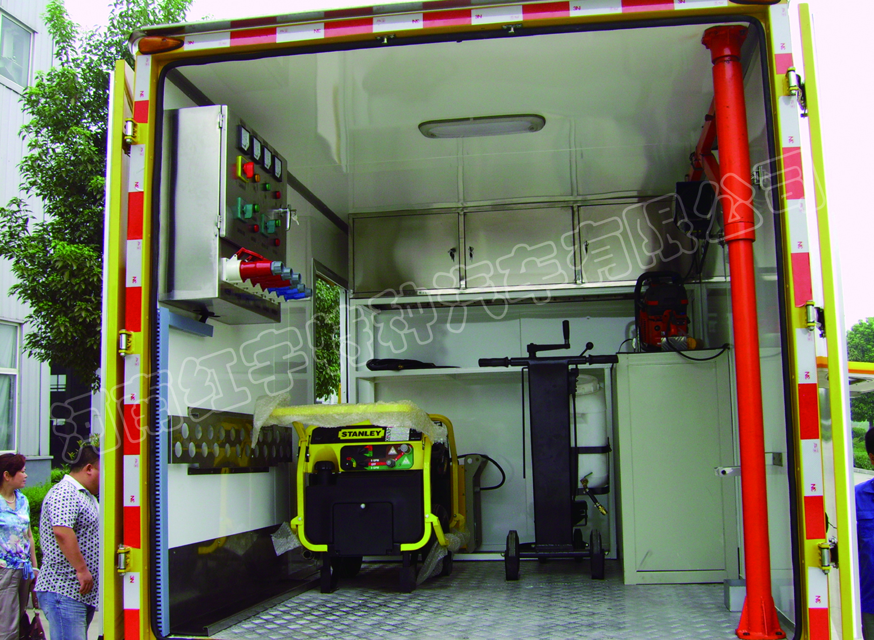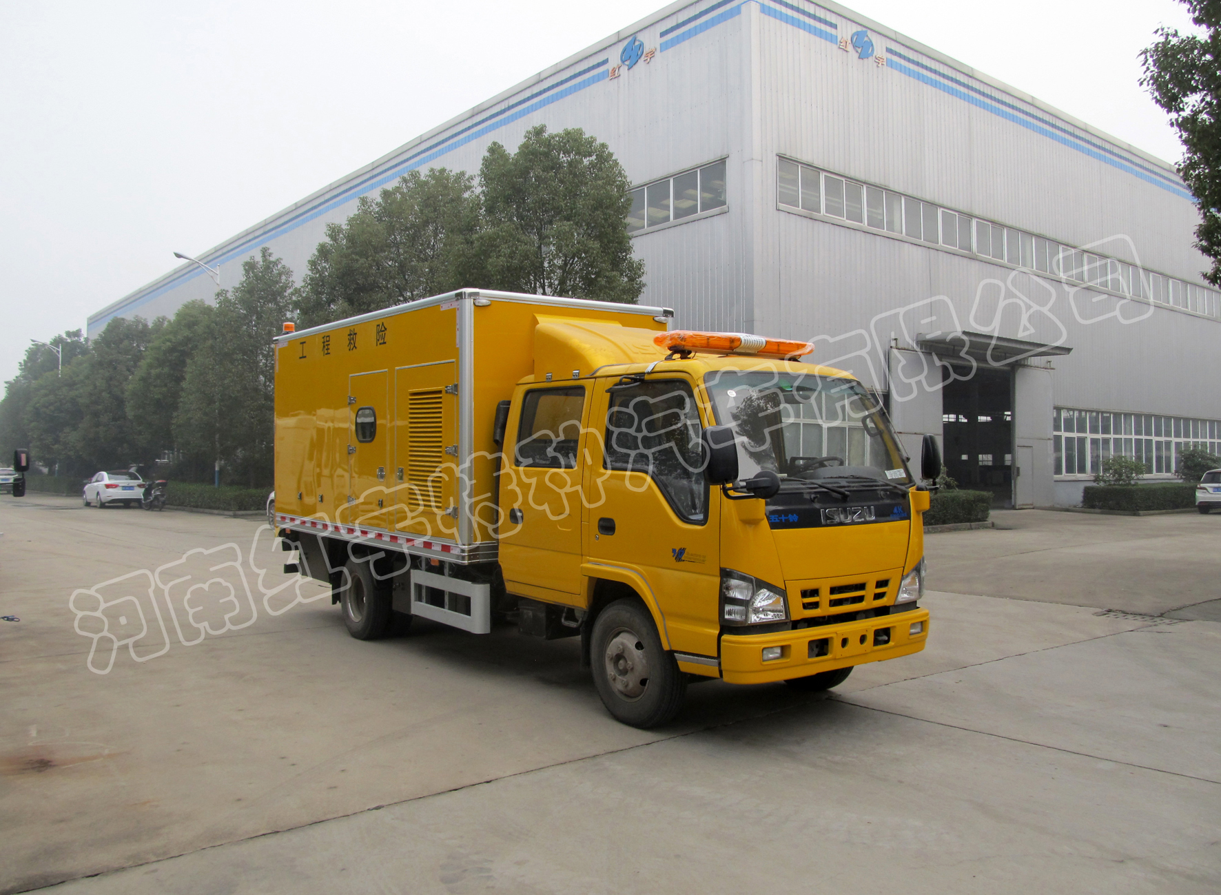紅宇救險車系列是河南紅宇特種汽車有限公司針對供排水、市政、熱力、燃氣、電力、機場、公路等行業的管網、路面快速搶險、搶修作業而開發的專用車輛。在出現險情時,能快速抵達現場,利用車載電源、車載工具可實現大部分應急搶修作業,如切割、破拆、排水、管道焊接等,大大提升了應急反應能力、提高了搶修工作效率。該車主要由慶鈴底盤、消音車廂、發電機組、電控系統、電纜、液壓工具、隨車吊機、車載升降照明、警燈警笛、倒車監控、清洗機、伸縮梯、工具柜等組成。屬成熟定型車輛,具備工信部公告目錄、國稅局免稅目錄、環保部環保公告和“CCC”證書,可掛黃牌上路。