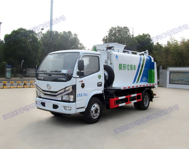 紅宇HYZ5070TCA餐廚垃圾車是我公司針對酒店、賓館、學校等單位產生的餐廚垃圾轉運、處理而開發的專用車輛。整車由底盤、廂體、掛桶機構、液壓系統、箱內沖洗、箱外高壓噴水、電控裝置等組成。