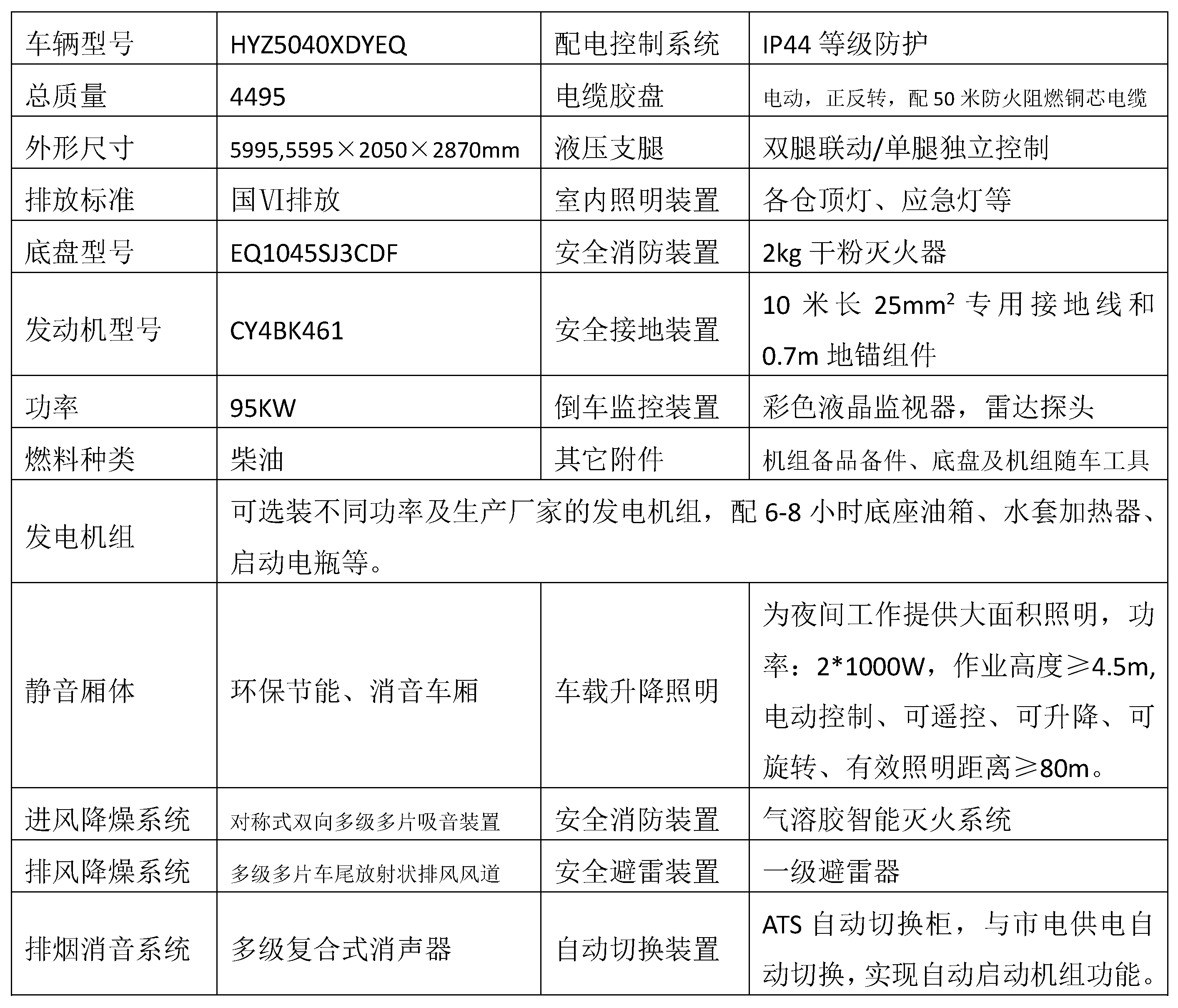 HYZ5040XDYEQ電源車(國六)