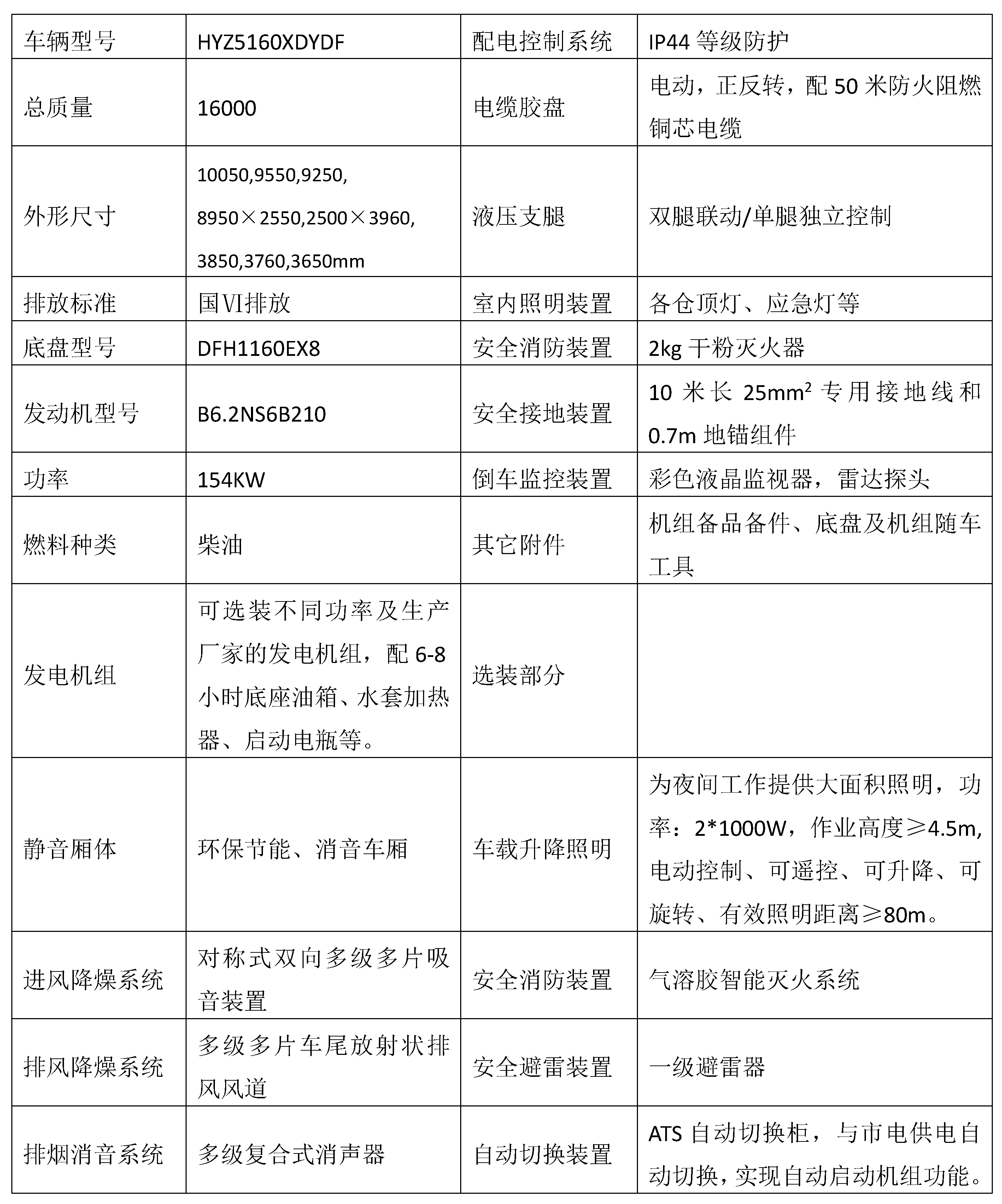 國六系列之—HYZ5160XDYDF電源車